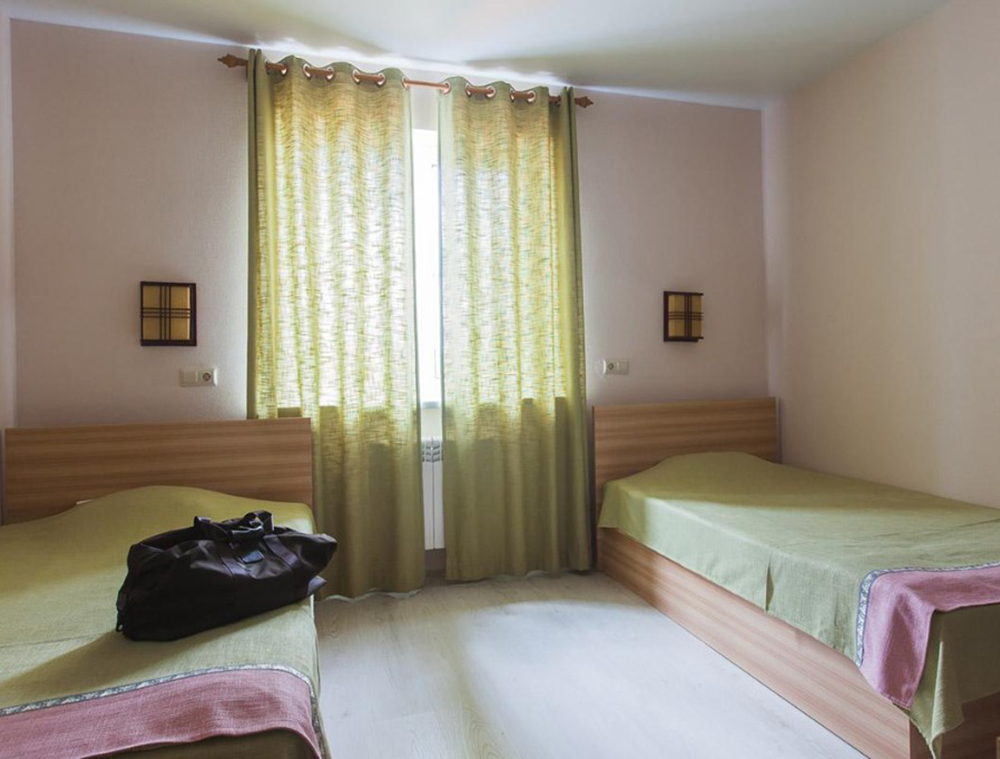 В номере: 2 раздельных полуторных кровати или 1 двуспальная (Пожелание в выборе кровати, просим указывать при бронировании), плазменный экран с цифровым телевидением, холодильник, кондиционер, телефон, чайник, кружки и стаканы.